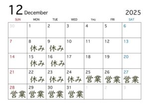年末・年始の営業日